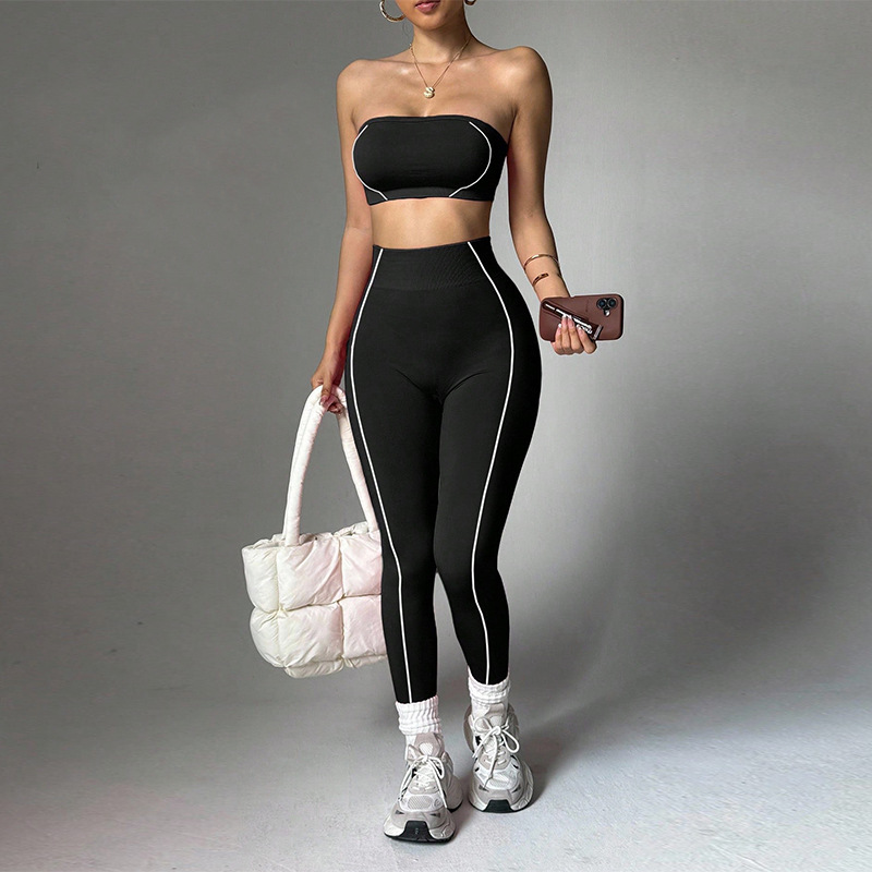 Contrast Piping Bandeau High Waist Yoga Set