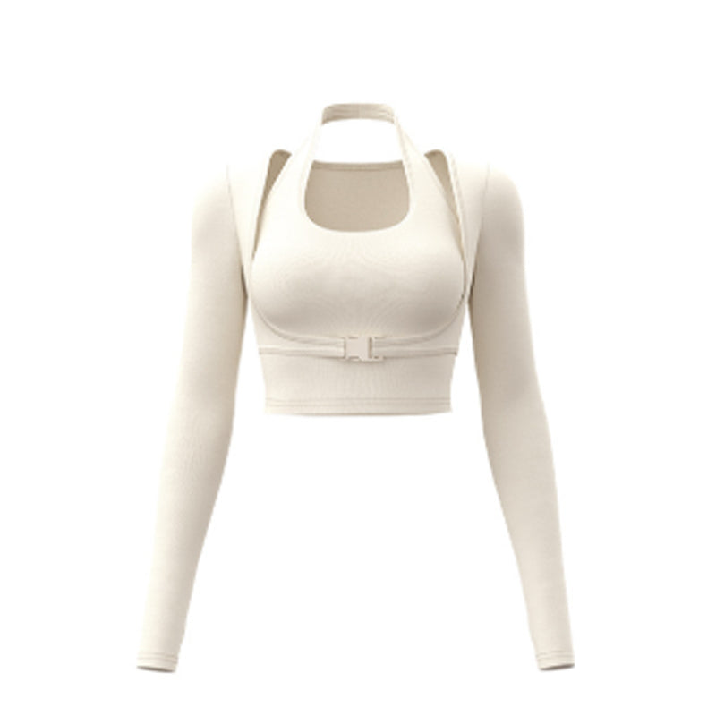 Halter Neck Layered Long Sleeve Yoga Crop Top